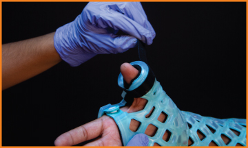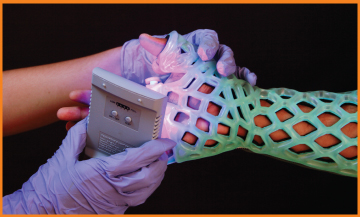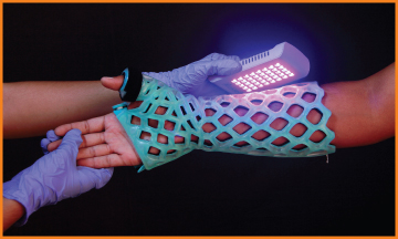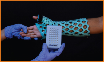 FlexiOH® Long Thumb Spica Immobilizers are designed for immobilization of first meta-carpo-phalanges and carpometacarpal joint. It has an inbuilt soft cushioning padding which is very comfortable for skin contact. It is used to provide support at wrist and fractures of the base of the first metacarpal (Rolando fracture/ Bennett’s fracture). HCP need to apply it on the patient’s hand and then cure it with the RizyCure® light device (recommended) for around 3-5 minutes depending on the size of immobilizer, until it gets rigid.
